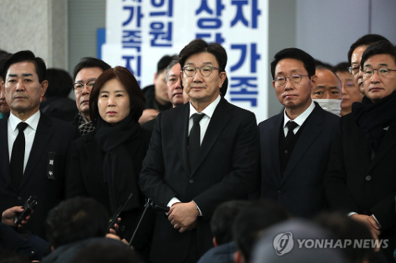제주항공 여객기 추락 사고 이틀째인 30일 오전 권성동 국민의힘 당대표 권한대행 겸 원내대표가 전남 무안국제공항을 방문했다. 유가족들은 권 권한대행을 향해 “빨리도 왔다”며 항의하기도 했다.