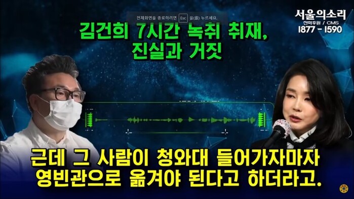 | ▲ 김건희 7시간 녹취록에서 무속에 입각해 집권 후, 영빈관을 옮기겠다고 예고, 서울의소리 |