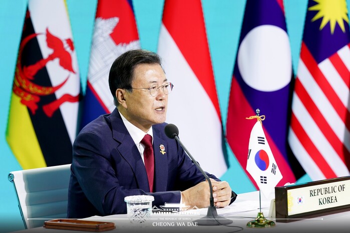한편, 문 대통령은 아세안이 우리 정부의 ‘한반도 평화 프로세스’를 일관되게 지지해 준 데 대해 사의를 표하며 화해와 협력의 시작인 ‘종전선언’을 비롯해 평화의 한반도, 함께 번영하는 동아시아를 향한 길에 변함없는 관심과 지지를 당부했다.