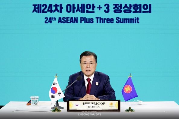 문재인 대통령은 17일 청와대에서 화상으로 참여한 ‘제24차 아세안+3 정상회의’에서 “이제 코로나를 극복하고 포용적인 회복을 이루기 위해 아세안+3 정상회의의 출범 정신을 행동으로 옮길 때”라고 밝혔고, 아세안+3 정상들, ‘ 청소년과 어린이의 정신건강 협력에 관한 정상성명’ 채택하였다.