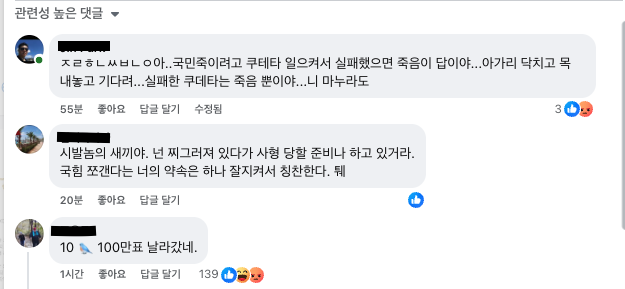 | ▲ 11일 윤석여릐 게시글에 달린 댓글들 (출처=윤석열 페이스북) |
