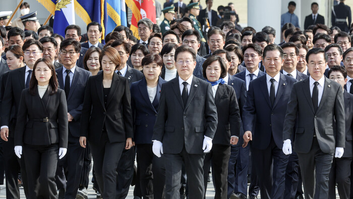 이 대표는 회견 후 현충원에 참배했다. 방명록에는 '함께 사는 세상. 국민께서 일군 승리입니다. 민생 정치로 보답드리겠습니다'라고 썼다.