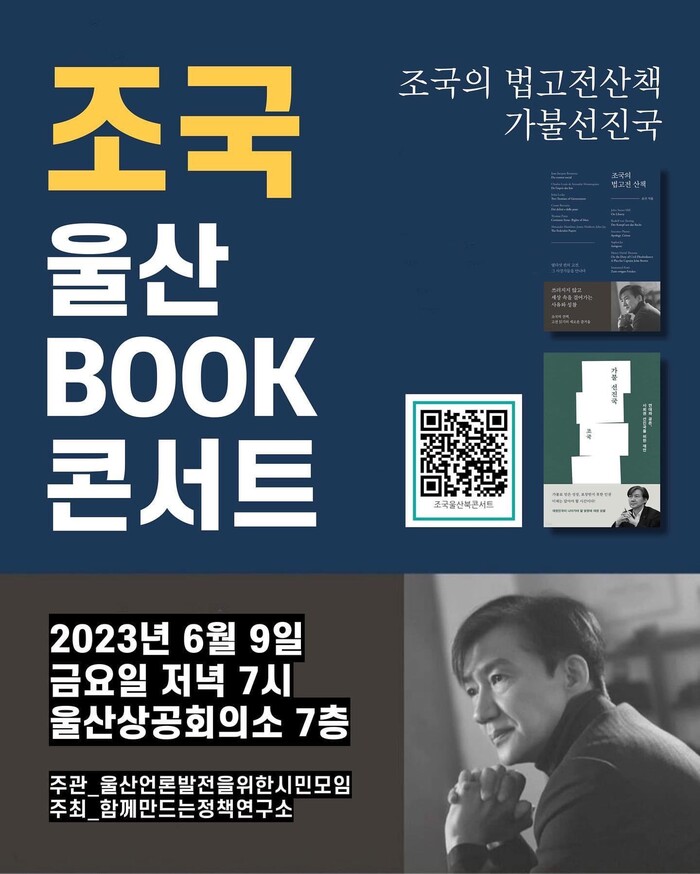 조국 전 장관이 울산에서 북 콘서트를 연다.