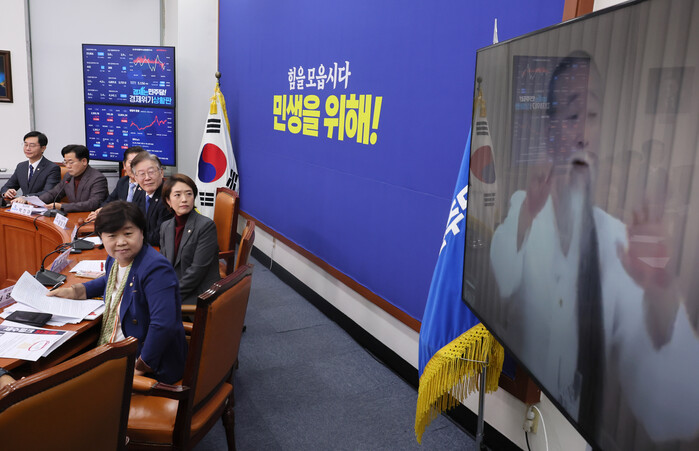 | ▲민주당 최고위원회에 등장한 천공 동영상 (사진=연합뉴스) |