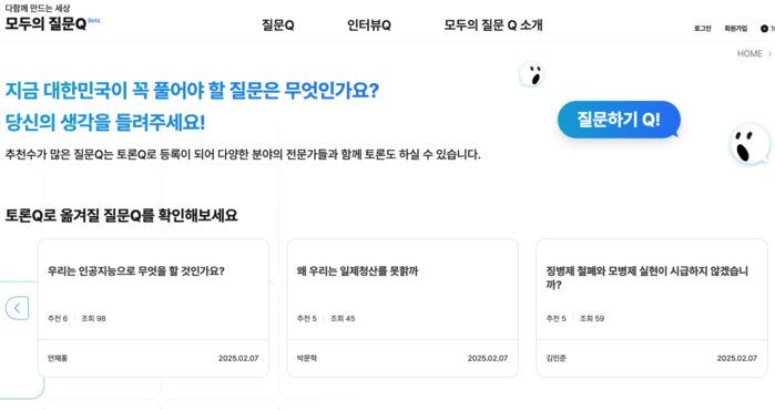 '모두의질문Q'-집단지성으로 우리 사회 문제를 공론화 및 해결 위한 소통창"