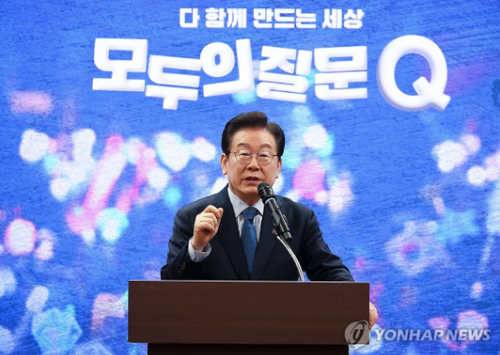 | ▲ 7일 정책소통플랫폼 '모두의질문Q' 출범식에서 격려사 하는 이재명 더불어민주당 대표 (사진=연합뉴스) |