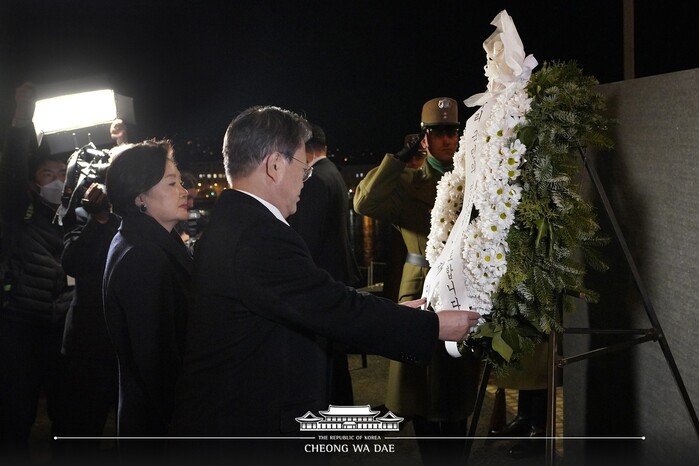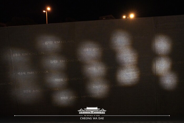 또 추모공간에 식수한 추모목인 은행나무에 대해 "은행나무는 아주 장수하는 나무이고 뿐만 아니라 조금 더 지나면 굉장히 아름드리 자라게 된다"며 "잎도 굉장히 많이 달리게 되고 열매도 풍성하다, 양국 관계도 그렇게 발전해 나가기를 바란다"고 말했다.