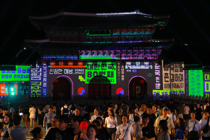 ▲ 서울 종로구 광화문광장에서 광복 80년 빛 축제 '80개의 빛, 하나된 우리'가 열려 광화문 외벽에 미디어 파사드 작품이 펼쳐지고 있다. 2025.8.16 (사진=연합뉴스)