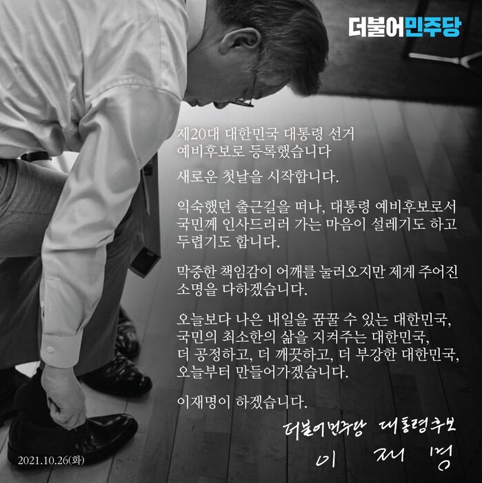 익숙했던 출근길을 떠나, 대통령 예비후보로서 국민께 인사드리러 가는 마음이 설레기도 하고 두렵기도 합니다.