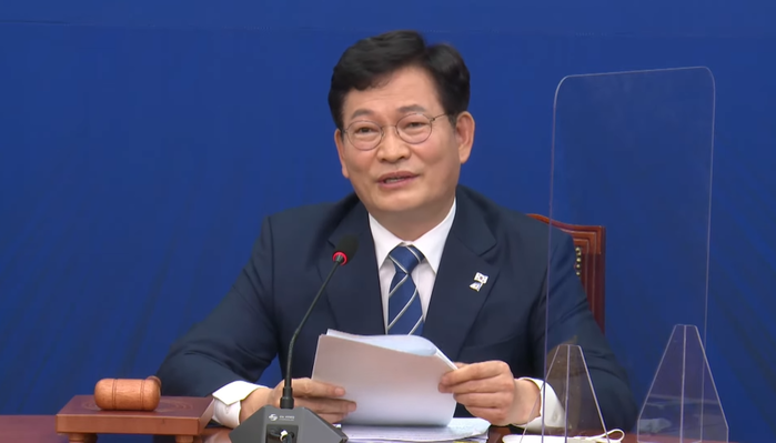 | ▲ 송영길 당대표가 10월 13일 최고위원회의 송영길 당대표 발언에서 "국민의힘 토건비리진상규명 TF" 와 "총선개입국기문란진상조사 TF" 활동 돌입을 이야기 하고있다, 델리민주 유튜브캡쳐 |