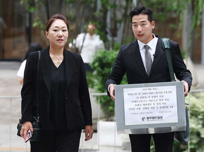 이날 강 씨 측은 수사 확장의 기폭제가 될 수 있는 방대한 양의 증거자료를 특검에 임의제출했다. 제출 목록에는 ▲명태균 씨의 PC 원본 ▲강혜경 씨 소유의 하드디스크 ▲PC 포렌식 자료 ▲미래한국연구소의 여론조사 분석 자료 ▲계좌 거래 내역 ▲2017년부터 사용된 강 씨와 김 전 의원의 휴대전화 각 1대 등이 포함됐다.