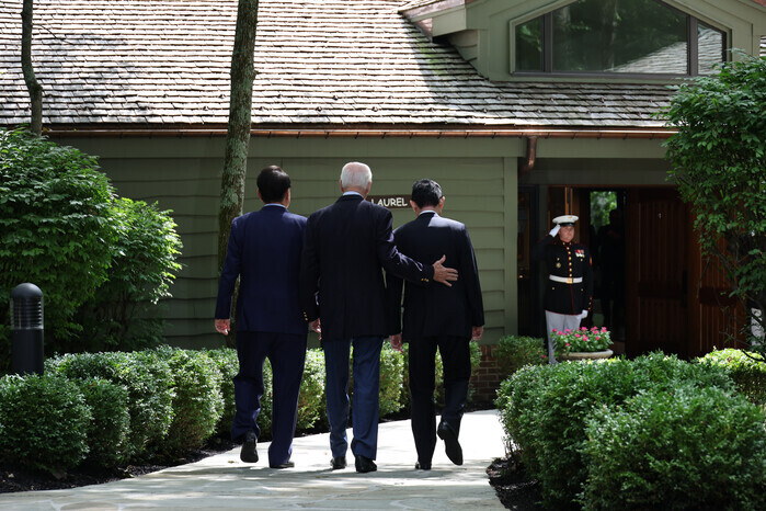 | ▲회의를 마치고 돌아가는 한미일 정상 (사진=대통령실) |