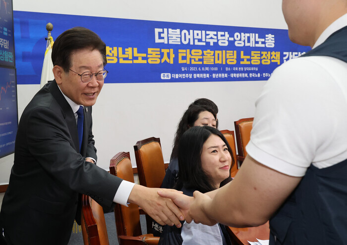 한편, 이 대표는 간담회에 참석해서는 "노동 탄압이 우리 눈앞에 현실로 펼쳐지고 있다"고 윤석열 정부의 노동 정책을 비판했다.