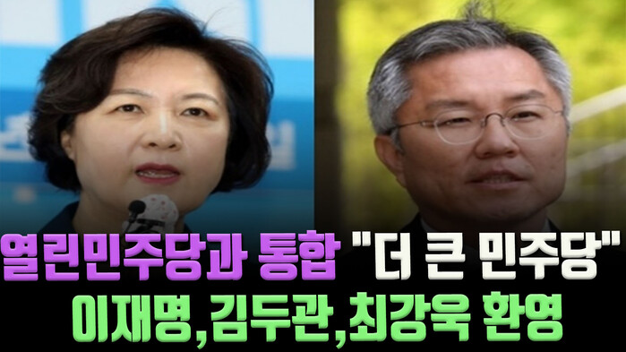 앞서 추 전 장관은 이날 국회 소통관에서 기자회견을 열고 민주당 지도부를 향해 “열린민주당 지도부와 당원들은 문재인 정부의 탄생과 촛불 민주주의를 함께 이뤄낸 동지들”이라면서 “책임 있는 자세로 열린민주당과의 통합에 나서 달라”고 촉구했다.