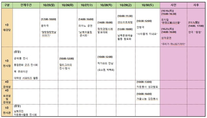 -남북통합문화센터 대강당에서 10월 25일(월)부터 10월 30일(토)까지 진행.