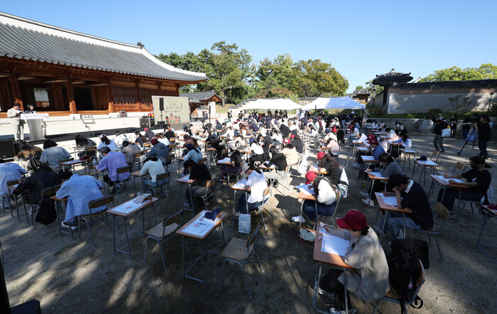 | ▲한글날을 앞두고 열린 받아쓰기 대회 모습 (사진=연합뉴스) |