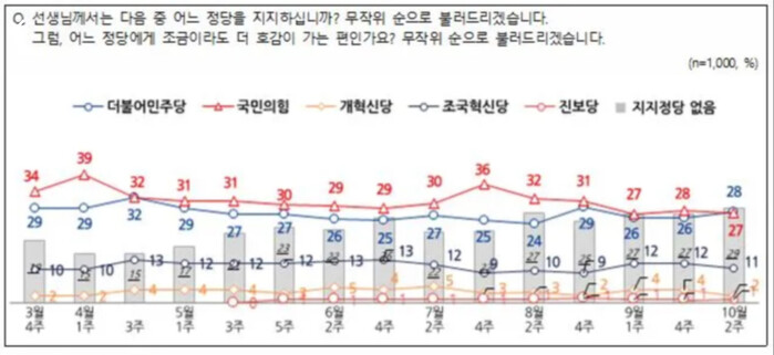 | ▲NBS여론조사 10월 10일 정당지지도 조사 결과 화면 캡쳐 |