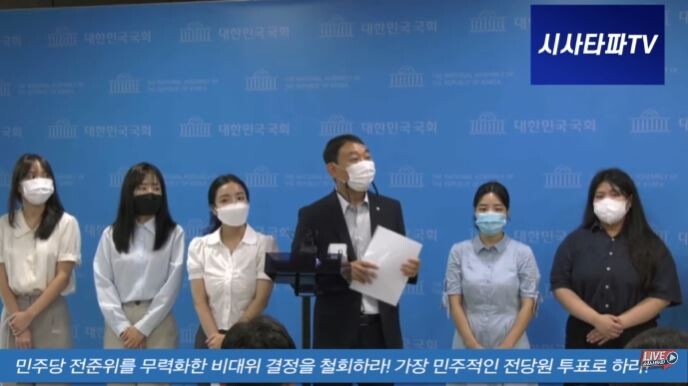 당무위 결정이 나기 전, 6일 오전 김용민 의원과 민주당 2030 청년지지자들이 기자회견을 가졌다.