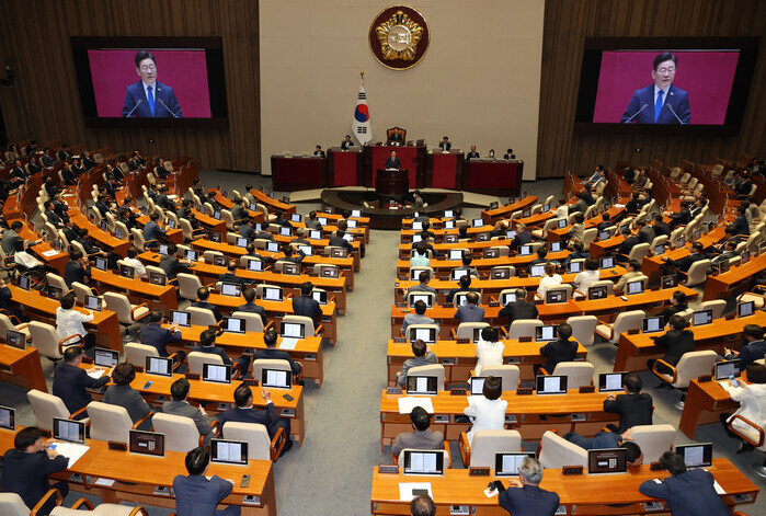 | ▲교섭단체 대표연설중인 이재명 대표 (사진=연합뉴스) |