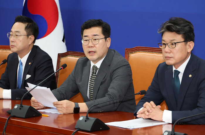 더불어민주당 박찬대 원내대표가 15일 "대통령 부부와 명태균 씨에 대해 수상쩍은 부당거래 의혹이 날마다 터져 나온다"며 "윤석열 대통령과 김건희 여사는 더는 피하지 말고 직접 해명해야 한다"고 말했다.
