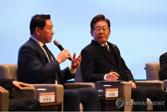 이재명 더불어민주당 대선 후보를 향해 경제계 목소리를 전달하는 간담회가 최태원 대한상공회의소(대한상의) 회장을 비롯한 경제단체장들과 삼성·SK·현대차·LG·롯데 등 주요 기업인 300여명이 참석한 가운데 개최됐다. 기업인들은 이 후보에게 "기존 방식으로는 성장할 수 없다. 제21대 대통령에 당선이 된다면 새로운 성장 동력을 키워달라"고 요청했고, 이 후보는 "같은 생각을 하고 있다"고 화답했다.