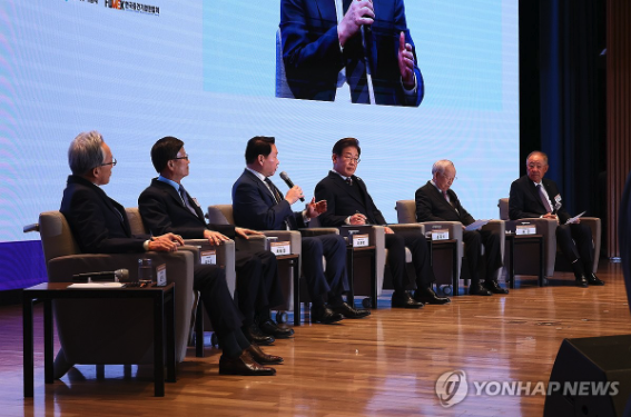이날 정책 간담회에는 최태원 대한상공회의소 회장, 손경식 한국경영자총협회장, 류진 한국경제인협회장, 윤진식 한국무역협회장, 최진식 한국중견기업연합회장이 참석해 이 후보에게 경제계 현안과 제언을 전달했다.