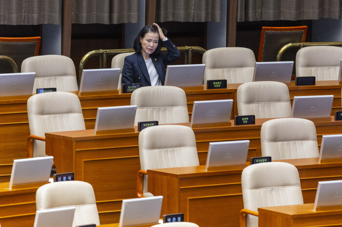 | ▲ 이진숙 방통위원장이 21일 서울 여의도 국회 본회의에 출석해 자리에 앉아 있다. 2025.8.21 (사진=연합뉴스) |