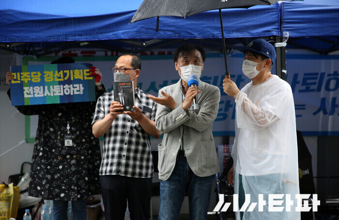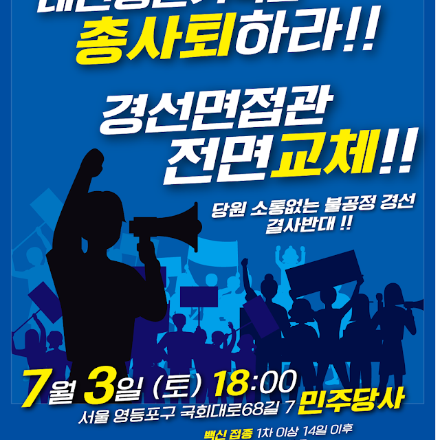 (사)개혁국민운동본부는 7월3일(토) 오후6시부터, 더불어민주당사 앞에서 "대선 기획단 총사퇴.면접관 전원 교체" 될 때까지 "무기한 투쟁" 들어갔다. 또다시, 민주당사 앞에서 강력한 집회 투쟁이라고 했다. 집회의 핵심은 "김경률 회계사"는 윤석열 총장이 본인이 사모펀드에 대해서 잘 아는데 "조국은 문제가 많다" 법무부장관이 되어서는 안된다고 하면서, "문재인 대통령의 인사항명"을 할때, "조국 펀드"라 부르며, 심각하게 문제있다고 떠들었던 인간이다.