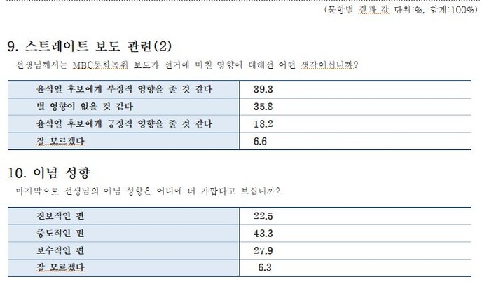 진보성향 22.5%, 중도 43.3%, 보수 27.9%.