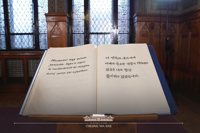 문 대통령은 특히 “(120여년 전 조선에서 선교활동을 한 헝가리 출신) 버이 삐떼르 신부님의 저서에는 조선 사람들이 품격있는 모습과 대륙의 관문 역할을 할 부산, 유럽과 유럽과 아시아를 잇는 머나먼 여정의 종착지로써 부산의 미래가 예견되어 있었다”고 놀라워하기도 했다