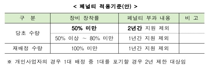 ②장착 인정기간 내 장착을 완료하지 못한 물류기업, 화주기업, 개인 사업자는 보조금 지급 대상에서 제외.