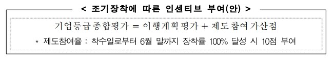 ①상기 조기장착 인정기간 내 장착을 완료한 보조사업자(물류기업・화주기업・개인사업자) 및 녹색물류 공모사업(효과검증 제외)은 지침 제17조에 의거 차년도 기업종합평가에 가산점을 부여함.