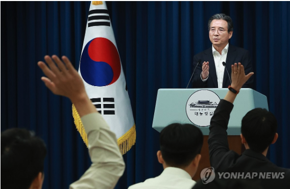 | ▲ 김용범 대통령실 정책실장이 31일 서울 용산 대통령실 청사에서 한미 관세 협상 타결 관련 브리핑 뒤 취재진의 질문을 받고 있다. 2025.7.31 (사진=연합뉴스) |