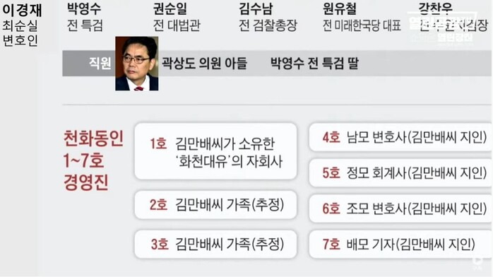 | ▲ 열린공감TV, 화천대유와 천화동인 인맥도, 천화동인 3호가 화천대유 김만배 친누나 김명옥. |