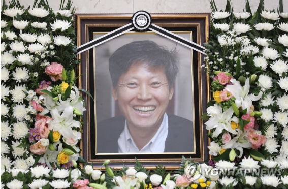 | ▲ 서울 송파구 서울아산병원 장례식장 이용마 기자 빈소에 고인의 영정이 세워져 있다. 이 기자는 2012년 공정방송을 요구하며 170일간의 파업을 주도했다는 이유로 최승호 사장(당시 MBC PD) 등과 해고된 뒤 해고 무효 확인 소송에서 승소해 2017년 복직했다. 2019.8.21 (사진=연합뉴스) |
