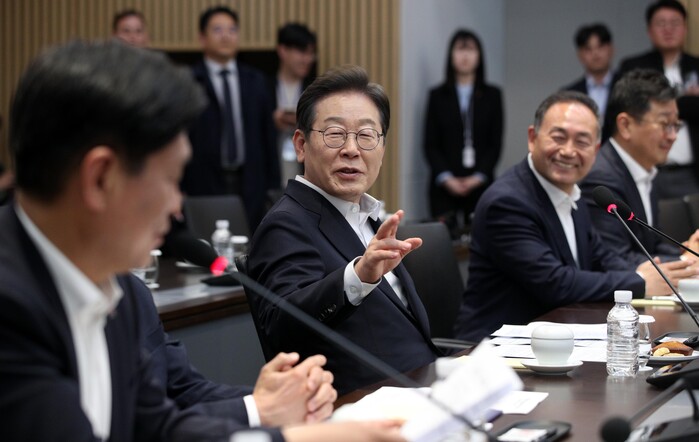 | ▲ 28일 AI 메모리반도체 기업간담회에서 이재명 더불어민주당 대선 후보 (사진=연합뉴스) |