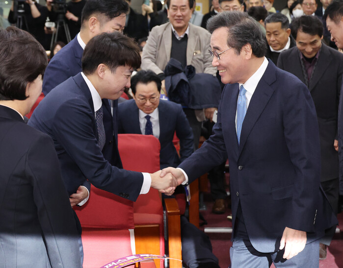 | ▲이준석 전 대표와 악수하는 이낙연 전 대표 (사진=연합뉴스) |
