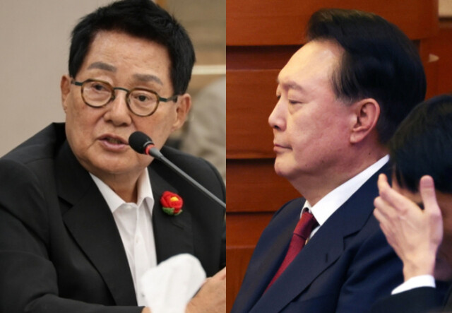 | ▲ 박지원 더불어민주당 의원과 내란수괴 윤석열 (사진=연합뉴스) |
