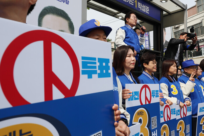 | ▲성동구 찾은 이재명 대표.. 박성준 후보 지지유세 (사진=연합뉴스) |