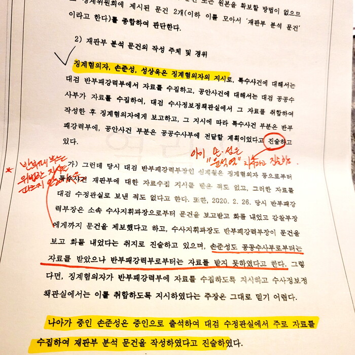 -대검찰청 수정관실 취합,문건 작성(손준성 총괄 책임)