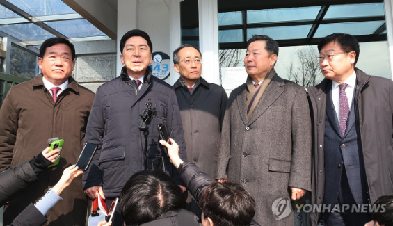 | ▲ 윤석열 면회를 마친 국민의힘 박성민 의원, 김기현 전 대표, 추경호 전 원내대표, 이철규, 정점식 의원 (왼쪽부터) (사진=연합뉴스) |