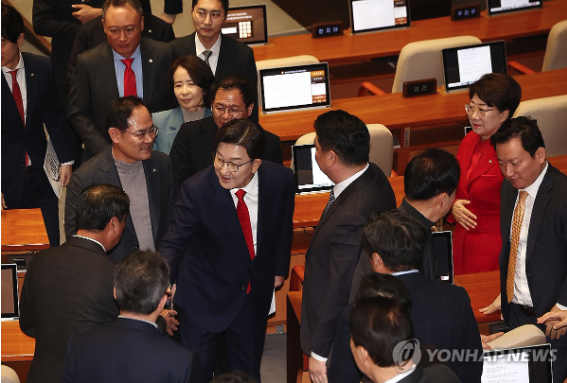 한편, 이날 권 원내대표는 교섭단체 연설은 통해 윤석열의 비상계엄 선포를 "납득할 수 없는 조치"라며 사과했지만, 이러한 국정 혼란이 이 대표와 민주당의 '의회 독재'에서 비롯됐다고 주장했다. 그러면서 민주당의 이 같은 행동이 이 대표의 '사법 리스크 방탄'을 위해서라고 비판했다.