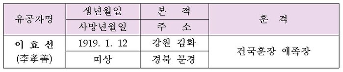 성명 : 이전효선(1919. 1. 12. 생), 본래 성명 : 이효선, 이명 : 이준환