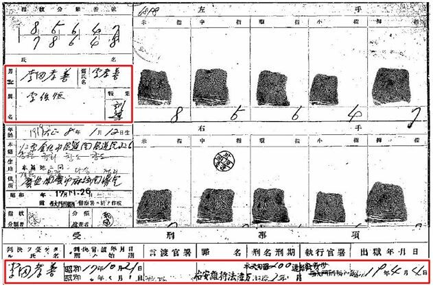형명형기 : 징역 1년 6월(1920년 징역 9월로 감형)