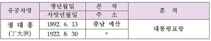 | 정대홍 선생이 출옥한지 1년 2개월 만인 1922년 8월에 사망 |