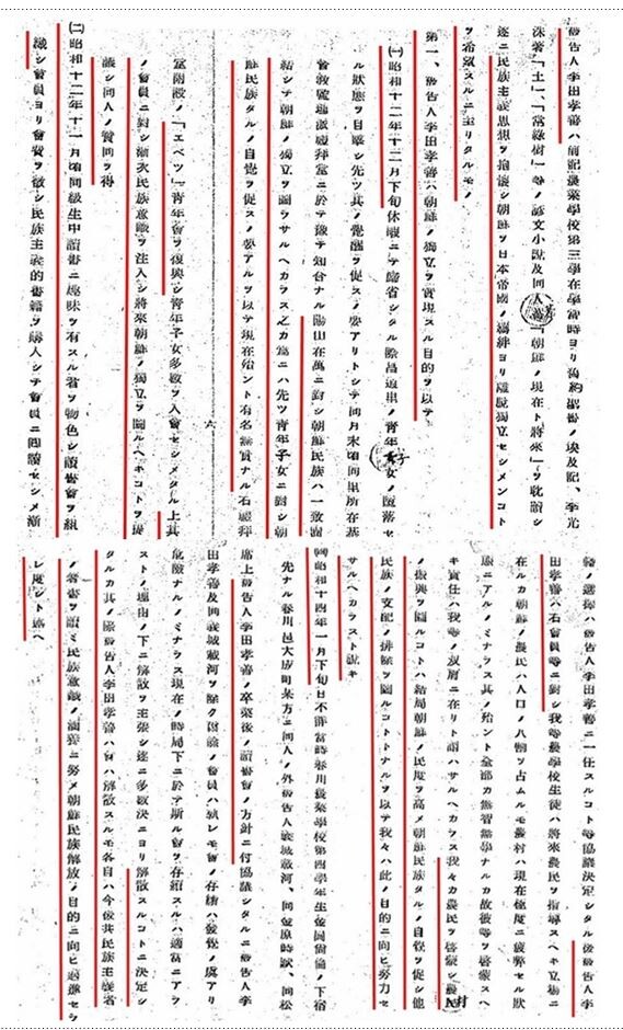 피고인 이전효선은 (중략) 민족주의 사상을 품고 조선을 일본제국의 기반에서 이탈, 독립시킬 것을 희망하기에 이르렀던 자로, (중략)