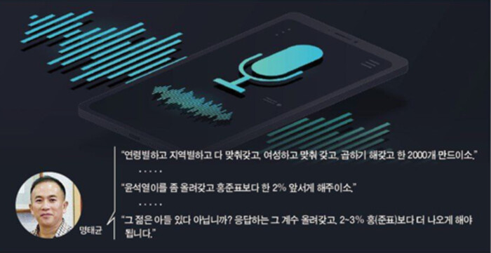 명태균씨와 회계 실무담당 강혜경씨 간의 통화녹음 파일에 따르면 명씨는 2021년 9월 강씨에게 전화를 걸어 여론조사를 조작하고 홍준표보다 윤석열이 높게 나오는 여론조사 결과를 만들라고 지시했다.