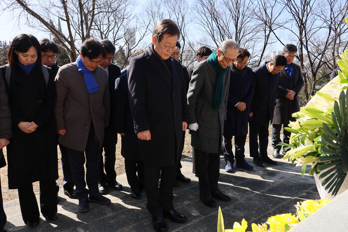 | ▲혀창공원 독립영웅 묘역 참배하는 이재명 대표 (사진=연합뉴스) |