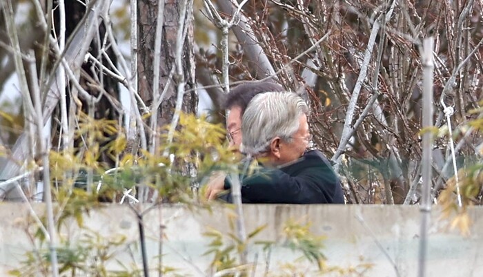 이재명 대표가 민주당 대표로 취임 후 이번이 공식 회동 세번째로 문 전 대통령은 테러에서 회복해 평산마을을 찾은 이 대표를 포옹으로 맞아 눈길을 끌었다.