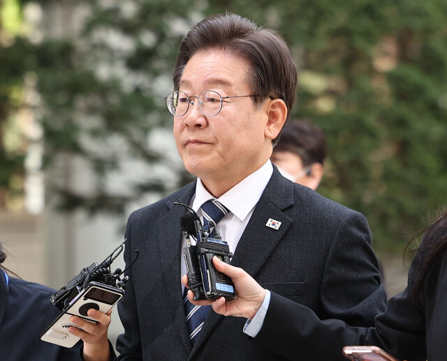 이 대표는 서울중앙지법 형사합의34부(한성진 부장판사) 심리로 열린 1심 속행공판에 출석하며 "앞으로 재판에는 빠짐 없이 출석하느냐", "임기 중 의원직 상실 가능성 등 사법 리스크는 여전하다는 지적이 있다"는 등의 기자들 질문에 답하지 않고 법정으로 들어갔다.